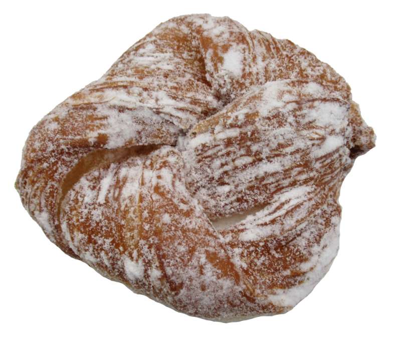 - 表面はクロワッサンのようにサックリ、中はベーグルのようにもっちりの2種類の食感が楽しめるハイブリッドなドーナツにドーナツシュガーをトッピングしました。