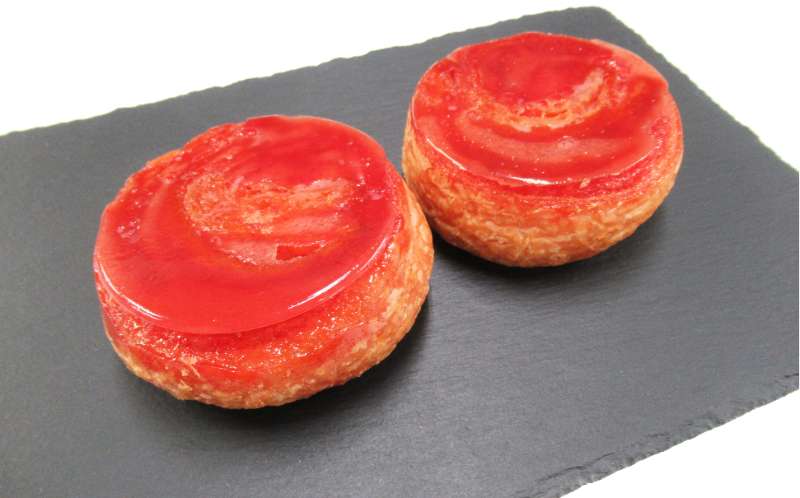 - いちご果汁入りパウダーを生地に練り込んだ、香り豊かなクイニーアマンです。
